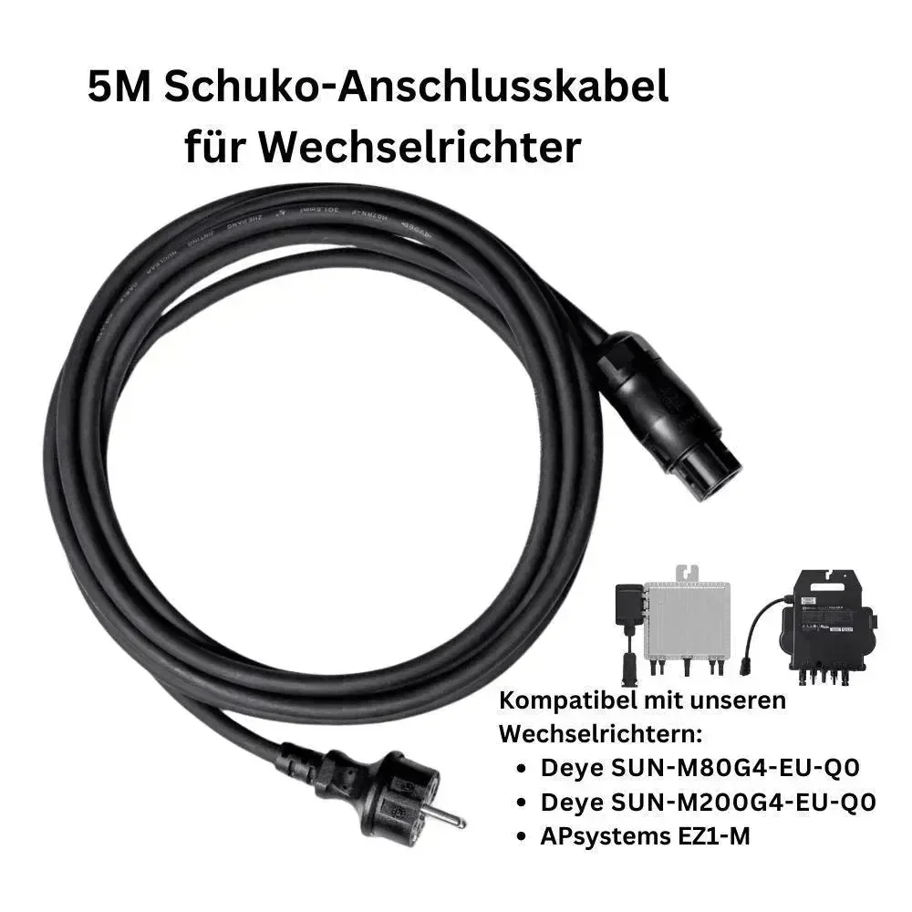 5metrový připojovací kabel Schuko pro měniče zajišťuje spolehlivé a bezpečné připojení vašeho měniče. Díky délce 5 metrů tento kabel poskytuje dostatečnou flexibilitu a dosah, což vám umožní pohodlně připojit měnič i v případě, že je zásuvka dále.