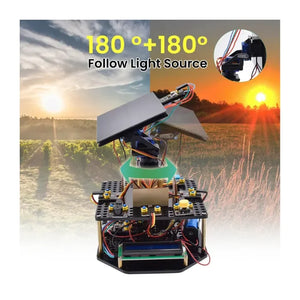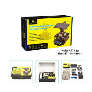 🔆 Keyestudio Solar Tracking Kit je Arduino založená STEM vzdělávací sada navržená k demonstraci, jak lze solární energii inteligentně zachytit a přeměnit na elektrickou energii. Obsahuje 4 senzory okolního světla, 2 DOF serva a solární panel, které společně sledují sluneční světlo a optimalizují sběr energie.