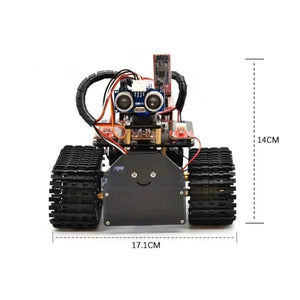 Tým KeyeStudio vyvinul mini tankový robot vybavený programovatelným procesorem, který využívá integrované vývojové prostředí Arduino (IDE). Tento design integruje shield, který se připojuje k procesoru a umožňuje mapování pinů na různé senzory a akční členy. Robot je schopen číst vstupy ze senzorů, ovládat akční členy a činit informovaná provozní rozhodnutí.