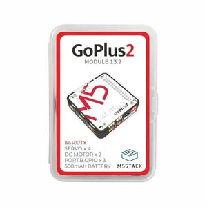 GoPlus2 je modul pro řízení víceúčelových motorů a serv s možností skládání. Hlavní řídicí jednotka integruje čipovou sadu STM32F030C8T6. Modul je vybaven rozhraním pro řízení 2kanálového stejnosměrného motoru a 4kanálového serva. Lze rozšířit tři rozhraní PORT-B (analogový vstup, digitální výstup, digitální vstup). Vestavěná baterie o kapacitě 500mAh a podpora infračerveného (IR) přenosu a příjmu. Pro splnění požadavků na napájení vícekanálového rozhraní současně je k dispozici DC napájecí rozhraní pro externí napájení, baterie může být nabíjena přes M5Core pomocí USB-C.