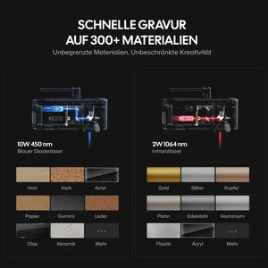 LaserPeaker LP4 je vysoce rychlý přenosný duální laserový gravírovač, který kombinuje 2W infračervený laser a 10W modrý diodový laser v jednom kompaktním těle. Díky patentovanému duálnímu laserovému systému je LP4 navržen pro tvůrce, studia a malé podniky, které potřebují profesionální výkon gravírování na téměř všech běžných materiálech.
