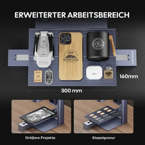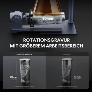 S volitelnými doplňky, jako jsou posuvná prodloužení a rotační systémy, může LP4 gravírovat větší kusy a válcové nebo zakřivené objekty. To výrazně rozšiřuje rozsah kreativních projektů, které můžete zvládnout s jedním strojem.