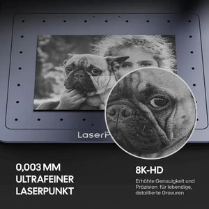 LP4 poskytuje rychlost gravírování až 4000 mm za sekundu, aby efektivně zvládl jak jednorázové zakázky na míru, tak sériovou výrobu. S rozlišením gravírování až 8K a vysoce přesným řízením pohybu jsou i jemné vzory, loga a text ostré a jasné.