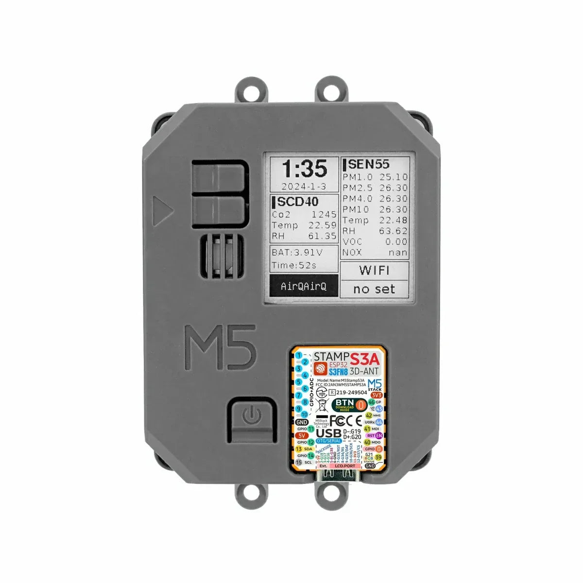 Air Quality Kit v1.1 s M5StampS3A je integrované, nízkoenergetické řešení pro monitorování kvality vzduchu navržené pro přesný sběr environmentálních dat v reálném čase. Ve srovnání s předchozí generací tato vylepšená verze používá hlavní řídicí jednotku Stamp-S3A s optimalizovanou spotřebou energie a vylepšeným designem Wi-Fi antény pro silnější konektivitu.
