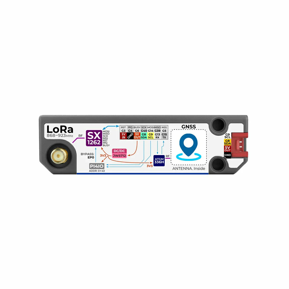- 📶 External SMA antenna interface for LoRa, built-in ceramic antenna for GPS