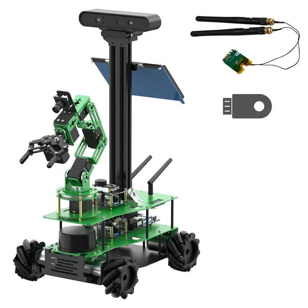 ROSMASTER X3 PLUS is an omnidirectional movement robot developed based on the ROS robot operating system. It supports four controllers: Jetson NANO 4GB, Jetson Orin NX SUPER, Orin NANO SUPER and Raspberry Pi 5. Equipped with high-performance hardware configurations such as lidar, depth camera, 6DOF robotic arm, 520 high-power motor, voice recognition interactive module, and HD 7-inch display screen. It can realize applications such as APP mapping and navigation, automatic driving, human feature recognition, moveIt robotic arm simulation control and multi-machine synchronous control. It supports mobile phones, handles, computer keyboards remote control. Many video tutorials with Chinese and English subtitles and codes are provided for free.