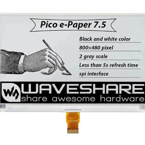 Waveshare 7,5 tommer E-Ink Display 800x480 E-Papir til Raspberry Pico