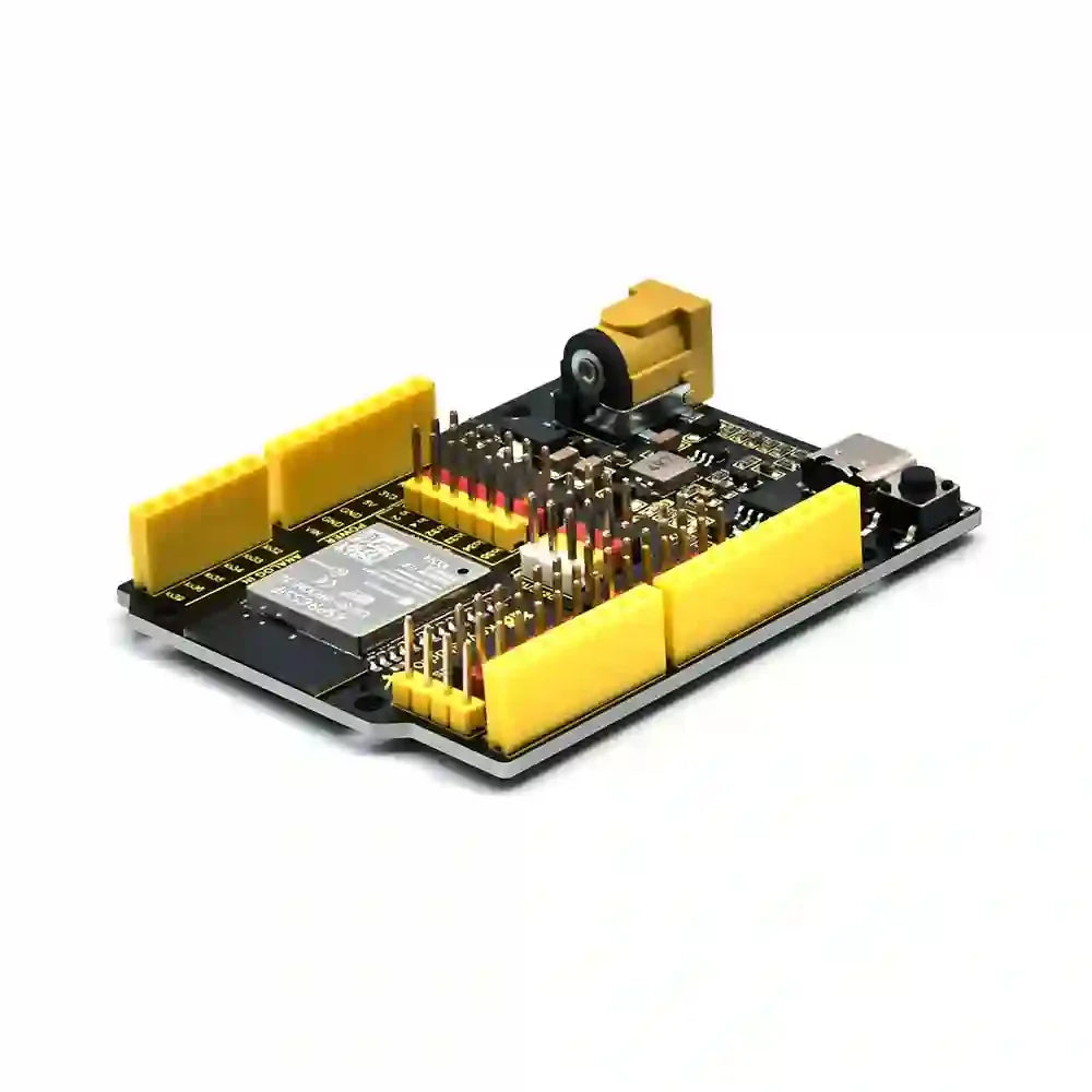 The keyestudio ESP32 PLUS Development Board er en alsidig og kraftfuld platform bygget på ESP32-WROOM-32 modul, designet til problemfri integration med Arduino projekter. Dette udviklingskort har både WiFi og Bluetooth funktioner, hvilket gør den ideel til anvendelser i Internet of Things (IoT) og smart home automation.