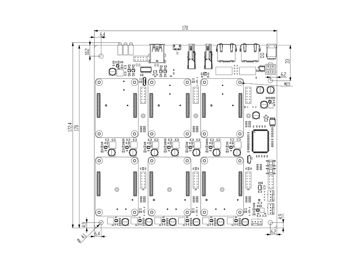 - Enhanced Peripheral Equipment for each CM4: Place one Micro USB 2.0 connector, an M.2 slot and TF card slot, along with one 5V fan interface for every CM4