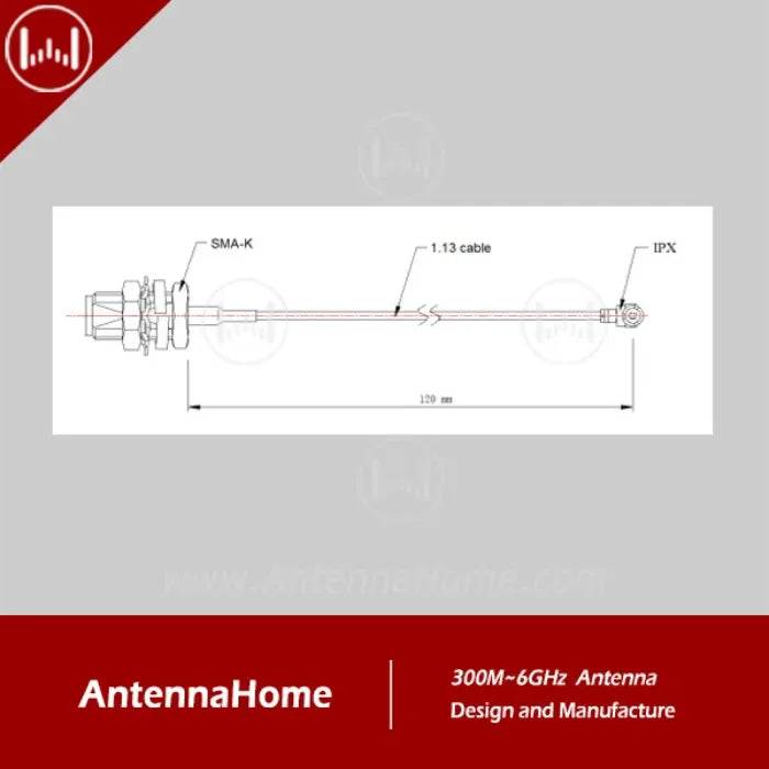 L120 1.13Cable SMA-IPX er en premium RF-kabelsamling designet til højfrekvent signaltransmission i kompakte elektroniske enheder. Denne professionelle 120mm koaksiale jumper har SMA til IPX/U.FL stik, der leverer enestående ydeevne til trådløse kommunikationssystemer, der opererer op til 6GHz.
