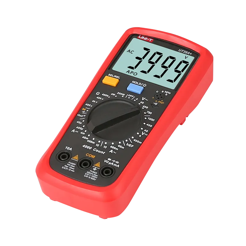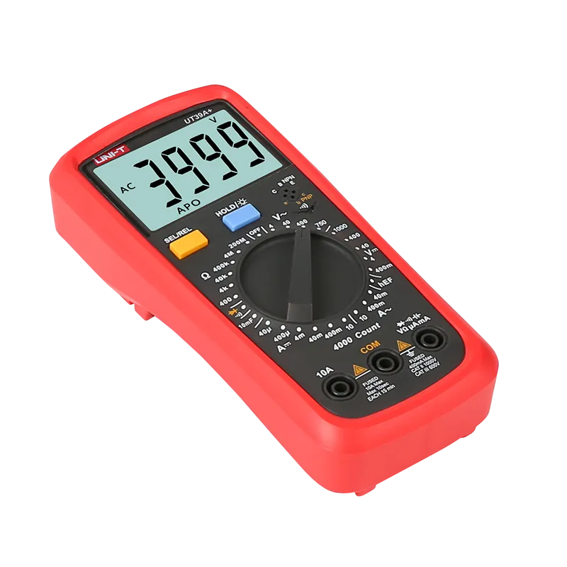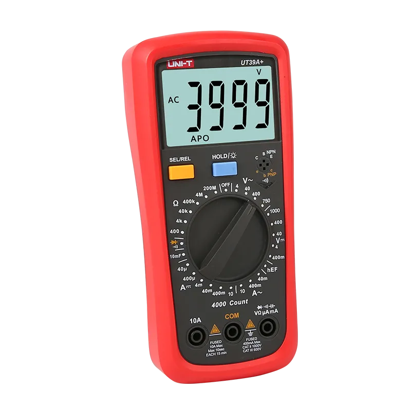 UT39A+ er et kompakt, bærbart digitalt multimeter udstyret med en ny generation smart ADC-chip. Det har overbelastnings- og overstrømsalarmer, omfattende højspændingsbeskyttelse og sikkerhedsklassificeringer CAT II 1000V / CAT III 600V, hvilket gør det til et topvalg for kommercielle og industrielle elektrikere. Det understøtter både manuelle og automatiske måleområder med en kapacitiv auto-range-tilstand.