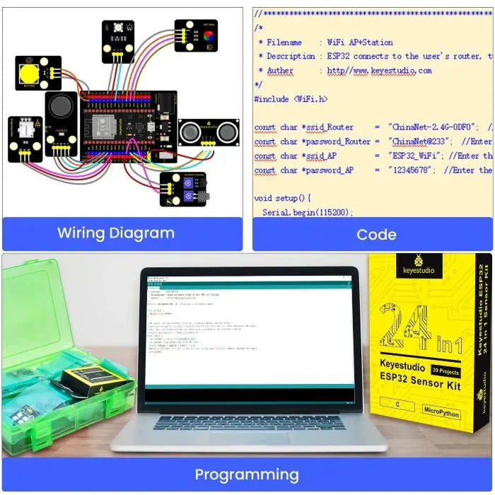 KeyeStudio ESP32 24-in-1 Sensor Starter-Kit DIY Bildungskit 39 Projekte