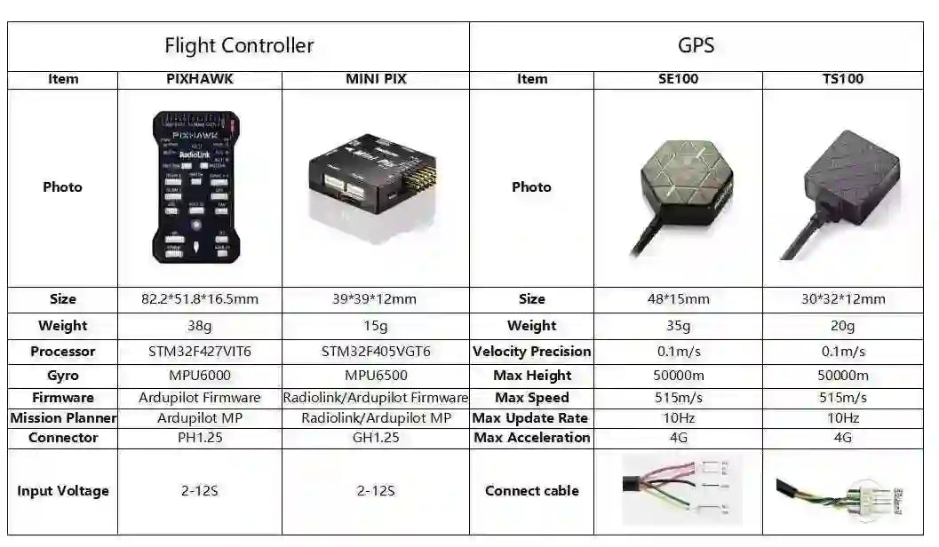 Der neue Radiolink hat den Mini PIX unabhängig entwickelt, und das Gehäuse verfügt über einen geschlossenen Schutz für das Barometer, um die Luftströmungsstörung während der Bewegung zu reduzieren und die Vibration zu reduzieren. Gleichzeitig optimiert der Softwarealgorithmus den Luftdruck, um die PIXHAWK-Komplettfunktion aufrechtzuerhalten, die einfach einzurichten ist.