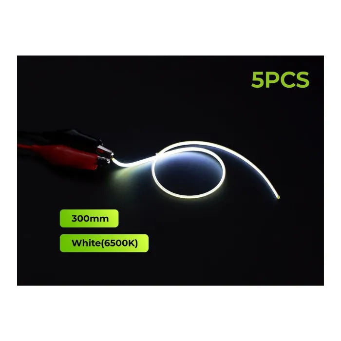 ✨ This pack includes 5 pieces of 1mm Ultra-Thin Single-Ended COB LED Filaments (300mm). ⚡ Unique single-ended power design keeps the tail clean and minimal. Ultra-flexible and cuttable, these COB LED strips fit perfectly into tight or irregular spaces—delivering bright, continuous light exactly where needed. 🔧 Each strip comes with DIY connecting wires (Total 10 wires).