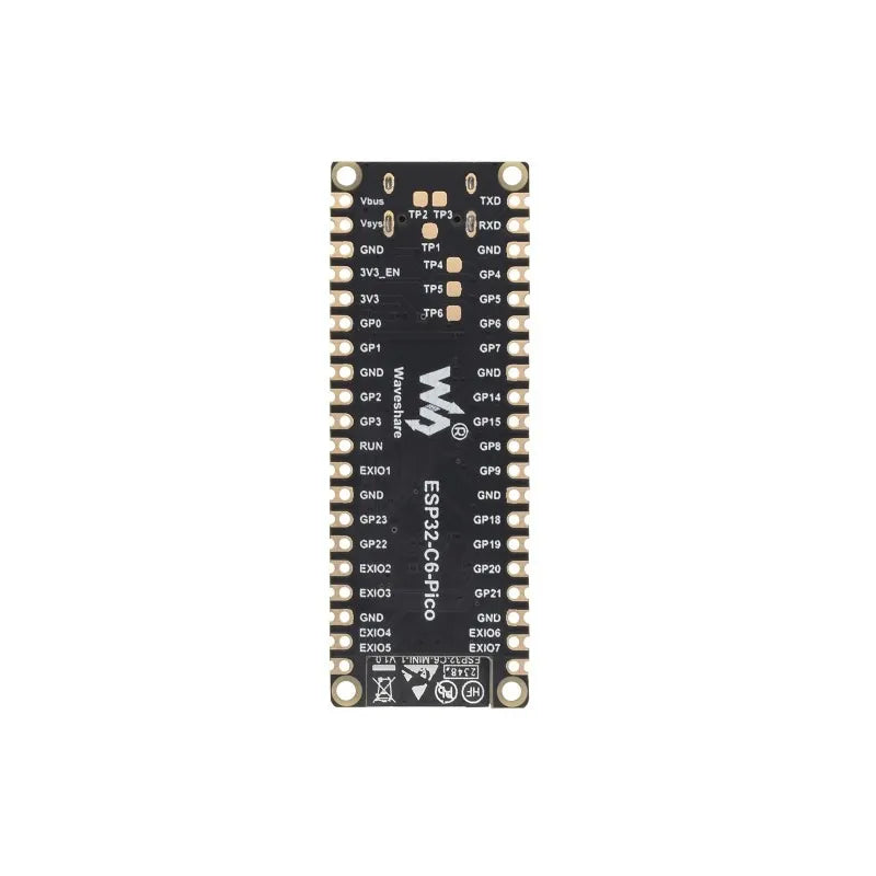 The ESP32-C6-Pico is an entry-level RISC-V microcontroller development board integrating WiFi 6, Bluetooth 5 and IEEE 802.15.4 (Zigbee 3.0 and Thread). It is compatible in size and interface with most of the Raspberry Pi Pico HATs. Easy to expand, with multiple peripheral interfaces. Suitable for smart home, industrial automation, healthcare, consumer electronics and other applications.