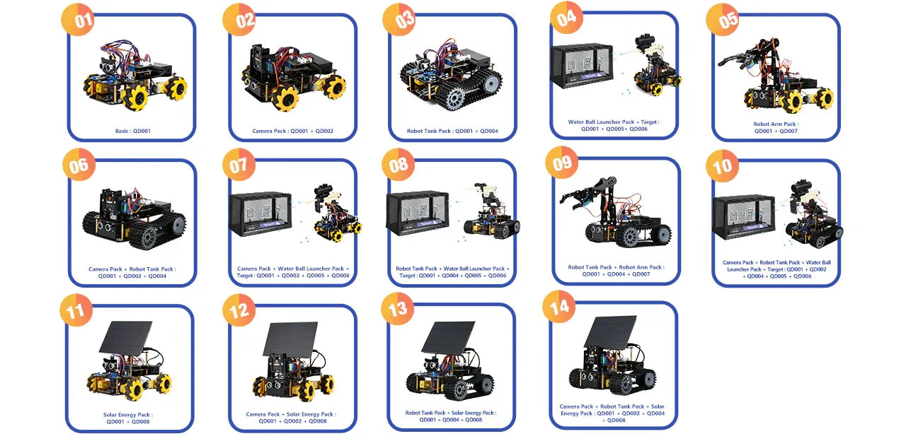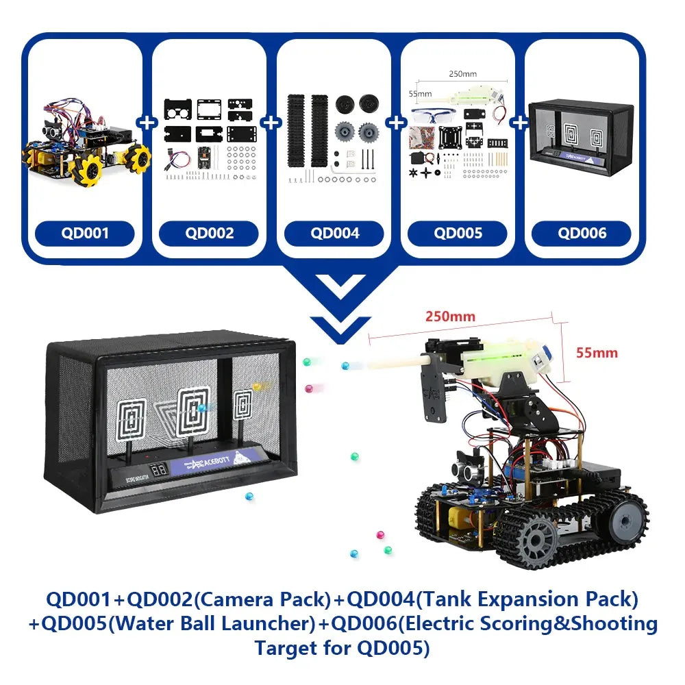 Supports Expansion Combination: The QD001 basic smart car kit serves as the core, and expansion packs can be added to customize its shape and features.