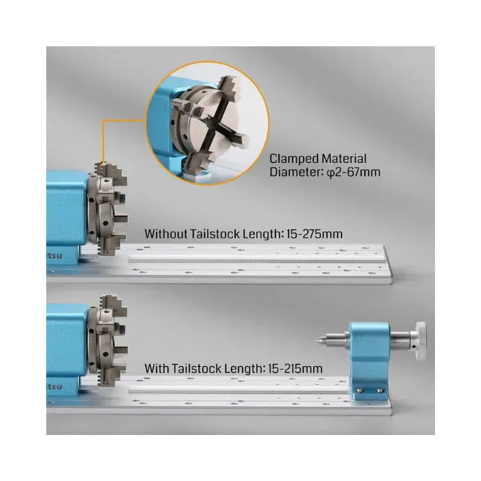 Configuración rápida del kit de módulo rotatorio para diversas longitudes y diámetros de material, asegurando una precisión y flexibilidad óptimas en todos tus proyectos CNC