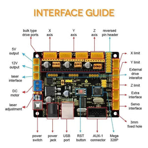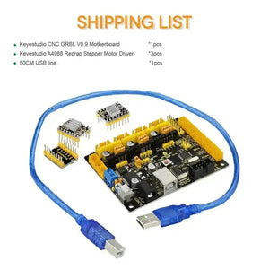 KeyeStudio CNC GRBL V0.9 on KeyeStudion kehittämä pääpiirilevy CNC:lle, laserkaiverruskoneelle, kirjoitusroboteille ja muille roboteille. Siinä on täydelliset liitännät kustannustehokkaasti, ja sitä voidaan ohjata ulkoisen liitännän kautta, sopii DIY- ja teollisuuskäyttöön.