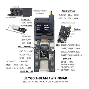 LILYGO T-Beam 1W ⚡ on seuraavan sukupolven ESP32-S3 IoT -kehityskortti, joka on suunniteltu pitkän kantaman LoRa-viestintään, GPS-seurantaan ja teollisiin IoT-projekteihin. Tehokkaan ESP32-S3FN8 kaksiytimisen MCU:n, 16 Mt Flash-muistin ja 8 Mt PSRAM-muistin ansiosta tämä kortti tarjoaa korkean suorituskyvyn Arduino, PlatformIO ja ESP-IDF -kehitykseen. Varustettuna 1W LoRa-lähetysteho 📡, Wi-Fi, Bluetooth 5.0 ja vankalla AXP2101 virtahallinnalla, T-Beam 1W on ihanteellinen älykkääseen maatalouteen 🌱, ympäristön seurantaan 🌍, omaisuuden seurantaan 🚚 ja ulkoisiin IoT-käyttöönotoihin.