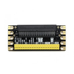 Edge Breakout Micro:bitille: reunaliitinlaajennuslevy, joka on suunniteltu micro:bitille ja joka tuo esiin I/O-nastat kohteeseen 2,54mm askelpituuden pin-nastat helppokäyttöisyyttä varten. Se laajentaa BBC micro:bitin GPIO, virta- ja anturiliitännät, jotka yksinkertaistavat ulkoista johdotusta ja nopeaa prototyyppien tekemistä koulutus, robotiikka, ja Tee-se-itse elektroniikka.