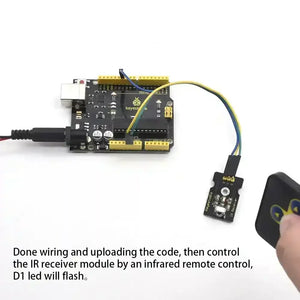 Améliorez vos projets avec le Keyestudio Digital IR Receiver Module. Parfait pour amateurs, éducateurs et développeurs, ce module simplifie l'intégration de technologie de télécommande, vous permettant d'explorer des solutions créatives et innovantes en électronique !