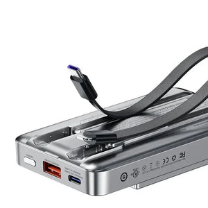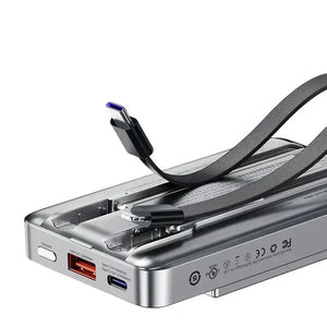 Câble autonome : doté d'un design élégant et transparent d'inspiration technologique avec une finition de peinture métallique, cette banque d'alimentation comprend un câble intégré pour plus de commodité.