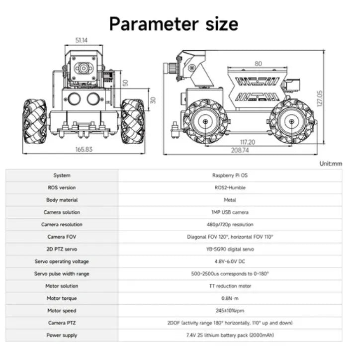 Roues Mecanum et moteurs à entraînement indépendant 4 canaux, il peut facilement réaliser un mouvement flexible à 360° et s'adapter à un terrain complexe.
