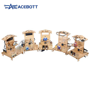 ACEBOTT 5-in-1 Smart Home Education Kit offre un percorso STEM pratico completo con cinque progetti interattivi. Gli studenti acquisiscono competenze pratiche in programmazione, hardware intelligente e tecnologie di comunicazione applicandole a scenari reali.