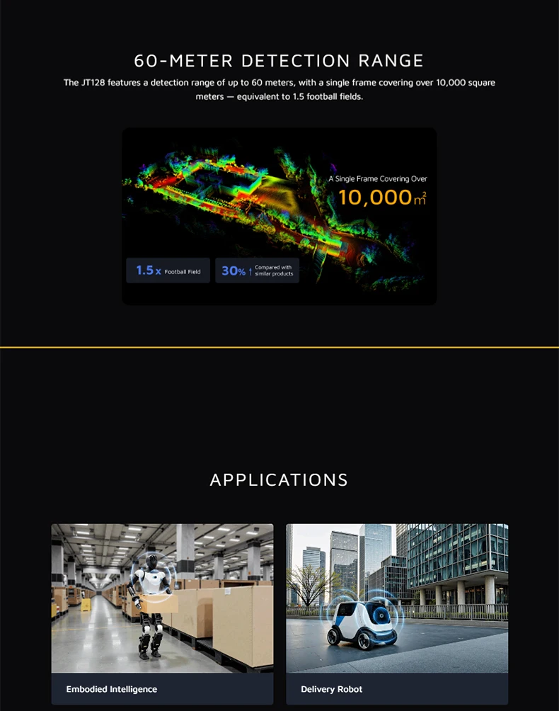 With a 0–60 m measurement range, 40 m detection capability at 10% reflectivity, and IP6K7 protection, the JT128 ensures stable and accurate sensing for demanding industrial and commercial applications, supporting high‑reliability automation and next‑generation navigation systems.