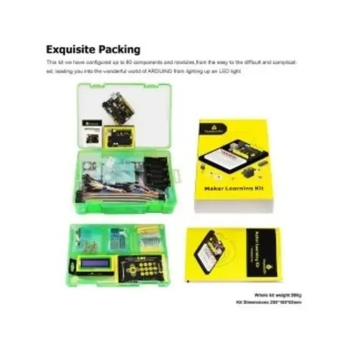 Maker Learning Kit è un kit di sperimentazione scientifica fai-da-te basato su Arduino. Include un controller, sensori e componenti elettronici per vari progetti. Questo kit non solo migliora le abilità pratiche degli adolescenti, ma stimola anche la loro immaginazione e creatività. Attraverso il gioco pratico, i bambini possono imparare su elettronica, fisica e programmazione. Gli insegnanti possono utilizzarlo per insegnamento innovativo, mentre i maker possono usarlo per la verifica del design di prototipi di prodotto.