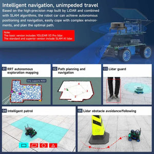 - Dotato di accessori professionali come lidar, telecamera di profondità, schermo da 7 pollici e modulo di interazione vocale, le prestazioni sono state notevolmente migliorate.