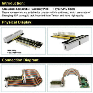 Dit RPI T-type GPIO-uitbreidingsbord is speciaal ontworpen voor Raspberry Pi B+ en helpt u externe apparaten op het breadboard aan te sluiten.