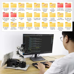 DOFBOT PRO compatibel met Jetson NANO 4GB/Jetson Orin NANO SUPER/Jetson Orin NX SUPER board. THet machine learning-model wordt getraind via de GPU van het Jetson-bord. Via python programmeren, maakt gebruik van een deep learning-framework en wordt gezamenlijk ontwikkeld met MediaPipe om AI-creatieve projecten te realiseren zoals objectbeeldherkenning, gebarenbesturing en menselijke houdingherkenning.