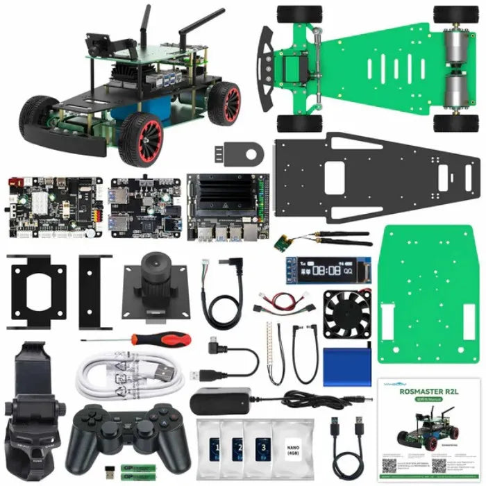 ROSMASTER R2L, een geavanceerde autonome rijrobot met een Ackermann-stuurstructuur die superieure wendbaarheid garandeert. Compatibel met het Jetson NANO ontwikkelbord, is de R2L gebouwd op de robuuste ROS en Ubuntu platforms, waardoor het ideaal is voor zowel ontwikkelaars als enthousiastelingen. Uitgerust met een 2MP high-definition camera en meerdere geïntegreerde herkenningsalgoritmen, ondersteunt deze robot essentiële functionaliteiten zoals modeltraining, autopilot, objectherkenning, en tagtracking. Net als andere modellen van Yahboom kan de R2L eenvoudig worden bestuurd via een mobiele app of een handcontroller. Bovendien bieden we 80 uitgebreide cursussen met Chinese en Engelse ondertitels om je leercurve in autopilot-modeltraining en ROS-gebruik te versnellen, zodat je snel de essentiële vaardigheden voor robottoepassingen beheerst. Of je nu een beginner bent of een ervaren ontwikkelaar, de ROSMASTER R2L is jouw ultieme oplossing voor autonome robotinnovatie.
