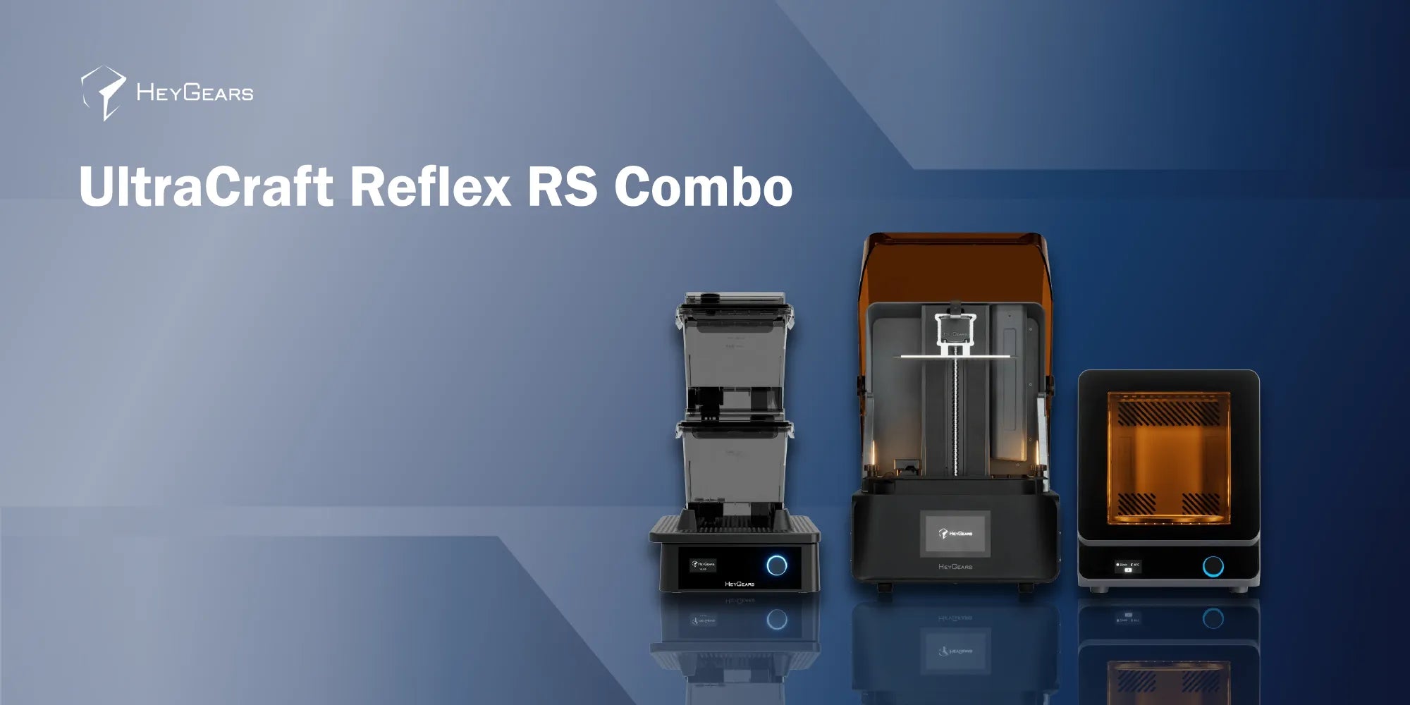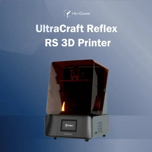 The HeyGears UltraCraft Reflex RS 3D Printer is a precision - engineered marvel, boasting a C5 grade Z - axis module for stable , clear layers and full - field screen calibration for high accuracy . Its Dynamic Motion Algorithm 3.0 significantly beposts print speeds.The ReflexRS supports featureslike Floating Screen Auto Leveling Automatic Resin Refill , and Automatic Resin Heating (with the RS Heated aPulsing Release ResinTank).With a 33 um XY precision and 93% consistency across 1,000 prints ,this printer is ideal for hobbyists and professionals alike, offering a comprehensive solution with HeyGears'software, cleaning machine, curing machine, and propriietary materials.