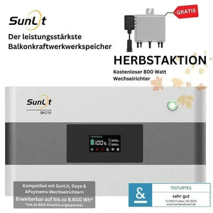 Magazyn energii SunLit Balkonkraftwerkspeicher BK215 w wersji "Refurbished" oferuje Państwu wysokiej jakości i niedrogą alternatywę dla zupełnie nowego urządzenia. Ten odnowiony produkt został już raz sprzedany i zwrócony z różnych powodów – na przykład z powodu błędnych zamówień lub specyficznych wymagań dotyczących kompatybilności. Po zwrocie BK215 został starannie sprawdzony i naprawiony, aby zapewnić taką samą funkcjonalność jak nowe urządzenie.