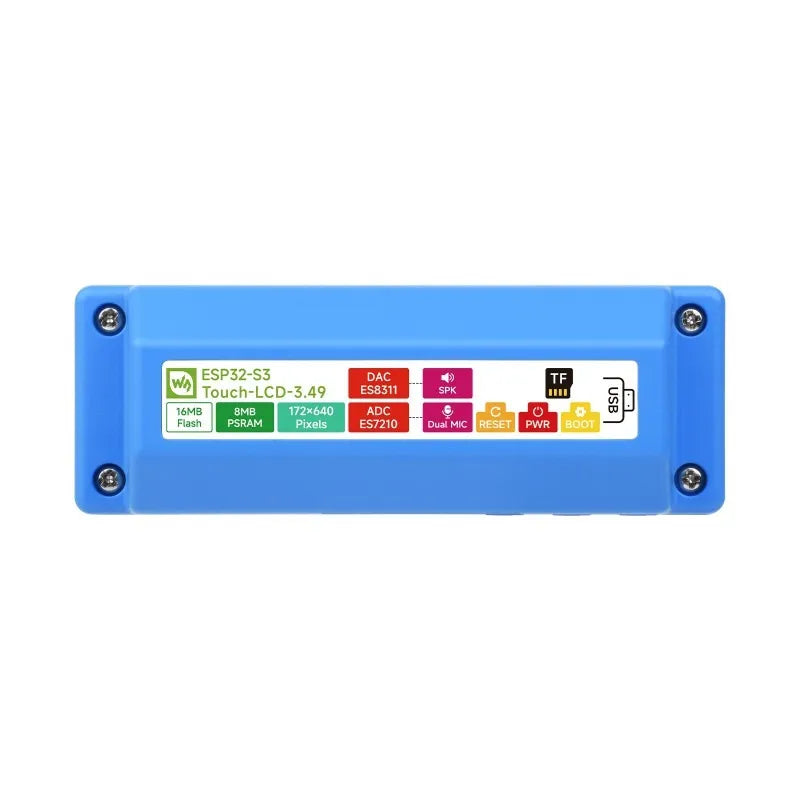ESP32-S3-Touch-LCD-3.49 to wysokowydajna, wysoko zintegrowana płytka rozwojowa mikrokontrolera zaprojektowana przez Waveshare. Posiada wbudowany 3,49-calowy pojemnościowy wyświetlacz IPS, wysoko zintegrowany układ zarządzania energią, 6-osiowy IMU (3-osiowy akcelerometr i 3-osiowy żyroskop), układ RTC, niskoprądowy kodek audio oraz układ eliminacji echa. Te komponenty ułatwiają szybki rozwój i integrację z produktami.