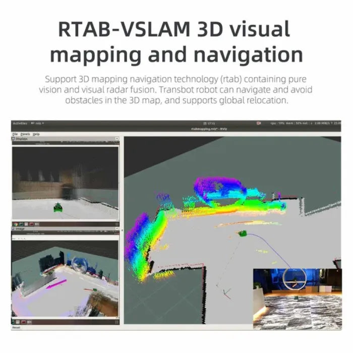 Transbot to gąsienicowy robot terenowy oparty na ROS (Robot Operating System) i Pythonie, zaprojektowany dla entuzjastów ROS i hobbystów robotyki. Wyposażony jest w wysokowydajny sprzęt, w tym Jetson NANO, LiDAR oraz kamery HD/głębi, umożliwiając zastosowania takie jak sterowanie ruchem, zdalna komunikacja, mapowanie i nawigacja, śledzenie i unikanie przeszkód, autopilot oraz symulacja ramienia robota oparta na MoveIt. Dostępna jest bogata oferta kursów, dokumentów i filmów edukacyjnych, które pomogą Ci szybko rozpocząć pracę z ROS.
