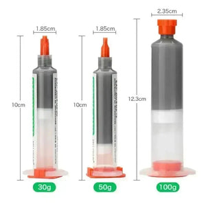 The 183° Solder Paste Syringe Flux is a silver-containing medium-temperature tin paste designed for soldering SMD (Surface Mount Devices), BGA (Ball Grid Array), IC (Integrated Circuit), and PCB (Printed Circuit Board). With a melting point of 183°C, it offers excellent conductivity and strong solder joints. The solder paste is packaged in a syringe with a needle for precise application and supports both pusher and needle feed, making it ideal for high-precision soldering in electronics production and repair tasks.