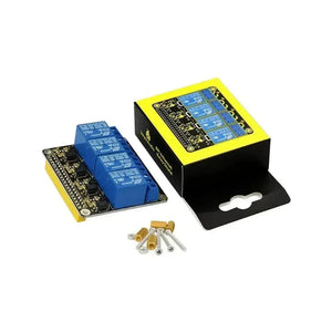 This shield uses a SINGLE relay, providing 4-channel input and output. The relays are isolated in the PCB. All the channels can control up to 24V DC or 250V AC on 10 A. It allows you to control high power components like lights and motors via Raspberry Pi 3. Just plug it directly into your pi with 5 V. You will find an LED indicates the status of the relays.