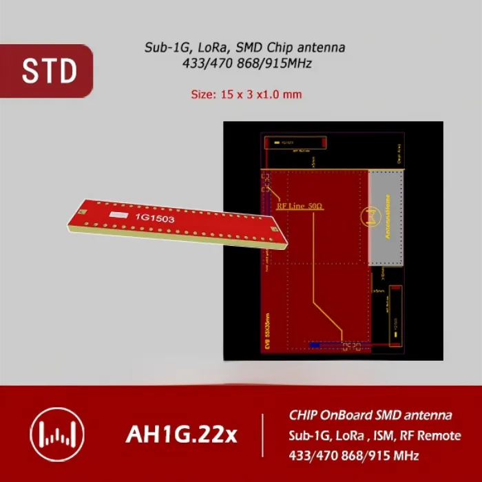 The AntennaHome Onboard Chip Patch Antenna is a compact, high-performance SMD antenna designed for multi-band wireless communication across 315 MHz, 433 MHz, 470 MHz, 868 MHz, and 915 MHz. Featuring a copper patch radiator, tape-and-reel packaging, and a miniature 15 × 3 × 1 mm footprint, this antenna is ideal for high-density PCB layouts and mass-production assembly. With optimized 50 Ω impedance, low VSWR, and omnidirectional vertical polarization, it delivers stable RF performance for IoT devices, wireless sensors, and compact embedded systems.