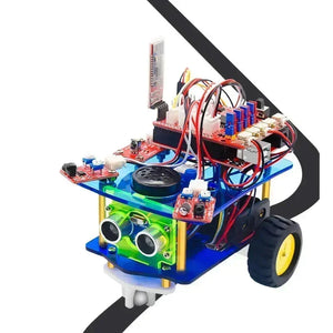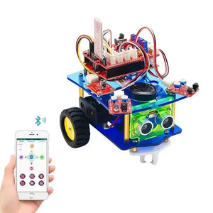 Today, we are introducing a fascinating programmable smart car that allows children to easily learn programming while gaining practical knowledge in electronics, mechanics, control logic, and computer science. This robot is based on the open-source ARDUINO platform, with very simple assembly and wiring. All components are connected with screws and copper columns, and it only takes a few simple steps to complete the assembly. It offers 15 programming course projects, ranging from simple to complex, guiding users step by step in learning how to "teach" the robot to understand commands.