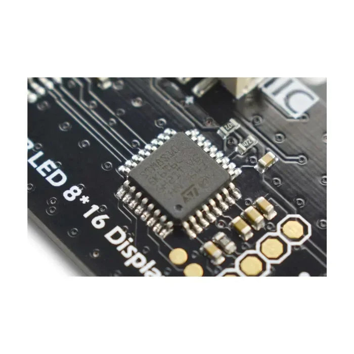 •Compact RGB Matrix: 128 addressable RGB LEDs (8×16 grid) supporting 7 default colors + custom image creation (text, symbols, scrolling displays) via I2C control .