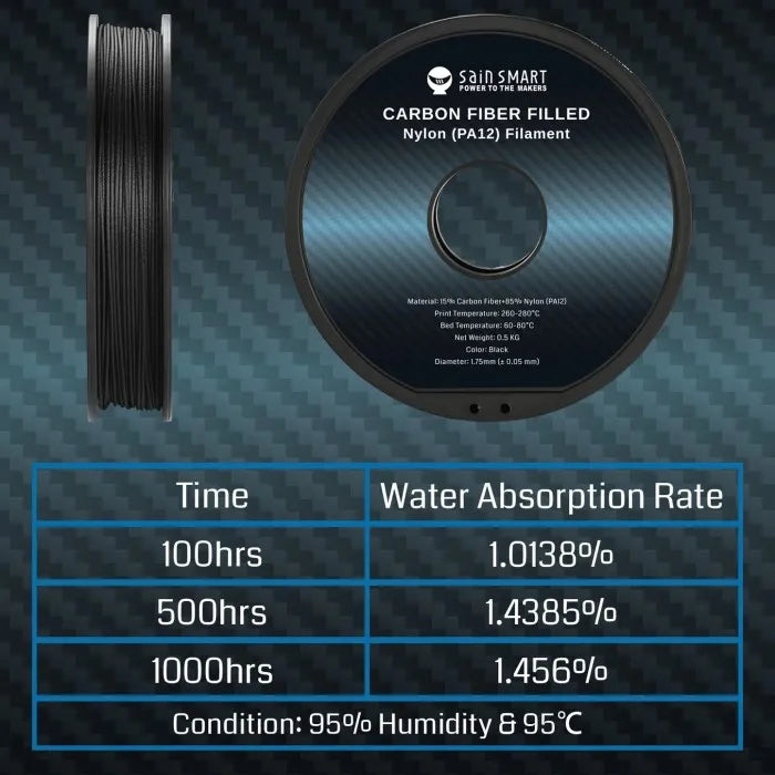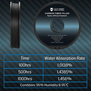⚠️ As an abrasive material, ePA12+CF filament can wear out and clog standard 0.4mm brass nozzles quickly. Hardened steel nozzles with larger diameters (0.6mm+) are highly recommended. For better finish and layer adhesion, dry the filament before printing and maintain a constant ambient temperature using a filament dryer or enclosure.