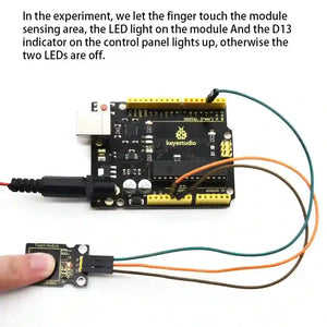 The keyestudio Capacitive Touch Sensor Module is an innovative solution for upgrading your Arduino projects with touch functionality. This module replaces traditional mechanical buttons with a capacitive touch interface, allowing for more intuitive interactions. It can detect touch through various materials, enhancing design flexibility and user experience.Its sensitivity decreases as isolation layer gets thicker.