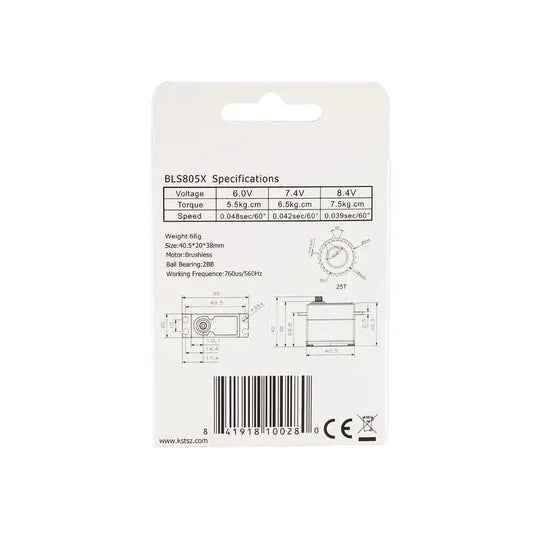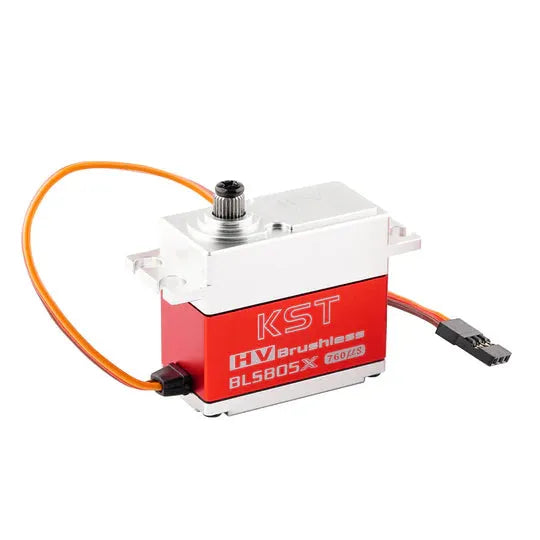 The KST BLS805X Servo is excellent due to the aluminum housing and the solid metal gear. The high positioning speed and the highly accurate setting back to the initial position allow optimal performance in 3D helicopter aerobatics. It is speedy because of the neutral impulse of 760µs and a possible frequency of 560Hz.