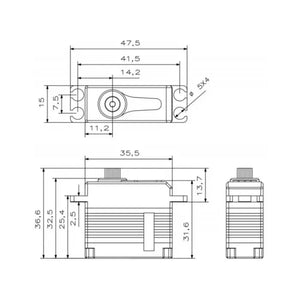 The housing is made of high quality aluminium alloy AI7075 with cooling fins and the gear is made of hardened steel. For these reasons, the KST X15-908 is more solid than, for example, the KST DS589MG.