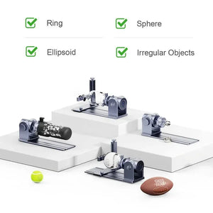 The LaserPecker Rotary Extension is a versatile rotary engraving accessory designed for engraving rounded, spherical, ring-shaped or irregular surfaces. With three sets of adjustable jaw attachments, it securely holds objects with diameters from 1mm to 145mm, enabling precise engraving on both inner and outer walls of conical, spherical and cylindrical items.