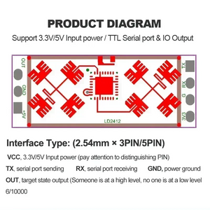 - LD2412 Test Kit : LD2412 Modul×1+ 2.54mm*5Pin DuPont Cable×1+Serial