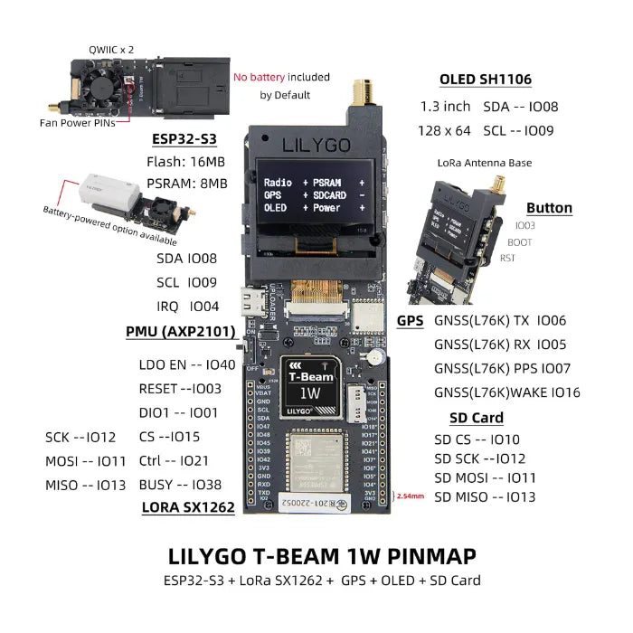 LILYGO T-Beam 1W ⚡ is a next-generation ESP32-S3 IoT development board designed for long-range LoRa communication, GPS tracking, and Industrial IoT projects. With its powerful ESP32-S3FN8 dual-core MCU, 16MB Flash, and 8MB PSRAM, this board delivers high performance for Arduino, PlatformIO, and ESP-IDF development. Featuring 1W LoRa transmission power 📡, Wi-Fi, Bluetooth 5.0, and robust AXP2101 power management, the T-Beam 1W is ideal for smart agriculture 🌱, environmental monitoring 🌍, asset tracking 🚚, and outdoor IoT deployments.